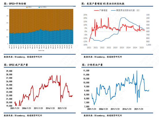 随着拜登在卸任之前启动了对俄罗斯的新一轮制裁,2025年1月份油价冲出了年内高点,随着特朗普再次上任,油价从年内高位开启了反转下跌,并在4、5月份二次下探了年内低点,布伦特原油短暂跌破60美元,WTI原油一度低至55美元附近,SC原油低至440元/桶,从1月份高点年内累积最大跌幅超30%,虽然5月之后油价有持续的反弹,但整体来看2025年上半年油价重心下移明显。而导致油价重心走低的关键驱动一是特朗普发起的“对等关税”让原本疲弱的全球石油需求再次受损,各大机构普遍因此下调了30万桶/日左右的需求增长预期,即便是随后关税谈判带来一些预期的改善,但需求还是因此明显受损。另一个导致油价下跌的主要原因是在沙特带领下欧佩克+连续的提速增产,让原油市场供应过剩几乎成为了2025年原油市场确定性的局面,这让各大机构和资金大幅调低了对油价的年度预期。