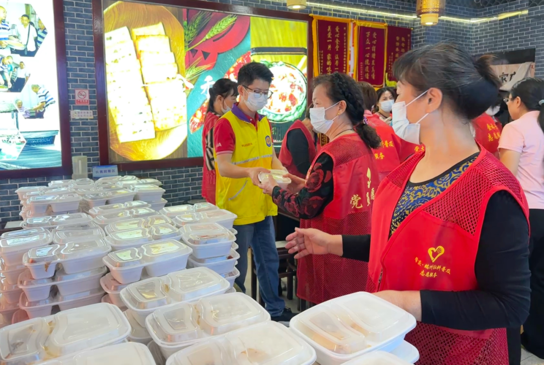活动承办方金禾老铺(长者饭堂)按照“营养均衡、口感适宜、分量充足”的原则备餐,每份爱心餐均包含主食米饭、时令蔬菜与优质肉类,确保长者既能吃得安心,也能吃得健康。上午10:30,星火服务队的志愿者们便与饭堂工作人员投入到午餐的分装、整理工作中。大家分工明确、默契配合,从餐食打包到餐具摆放,每一个环节都细致严谨,力求将最新鲜、最温暖的餐食送到长者手中。