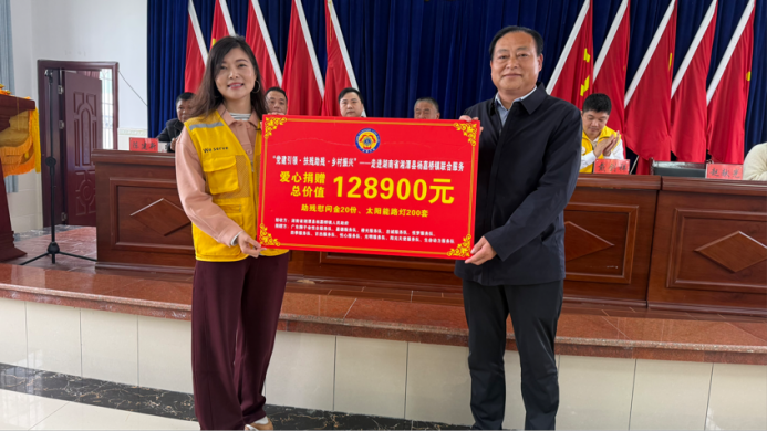 活动现场,悦合服务队队长赵希将代表200盏太阳能路灯和20份助残慰问金的捐赠kt板交给金福村赵献光书记和杨嘉桥镇残联主席陈杰,此次爱心捐赠的物资与善款总价值128900元。这批物资不仅照亮了乡村的夜晚,更温暖了村民的心坎。太阳能路灯将为村民夜间出行提供安全保障,助残金则直接惠及当地残疾人家庭,助力他们改善生活条件。