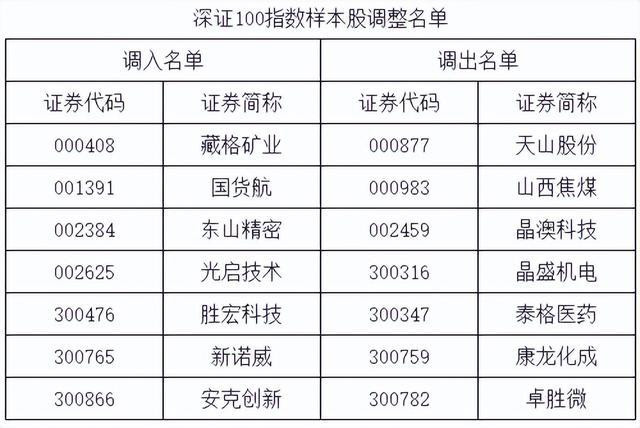 深证100指数更换7只样本,藏格矿业、国货航、东山精密、胜宏科技等调入指数。