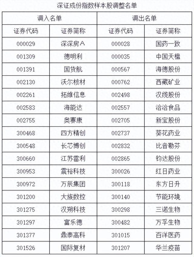 从调整的具体个股名单来看,深证成份指数更换17只样本,深深房A、德明利、长芯博创等调入指数。