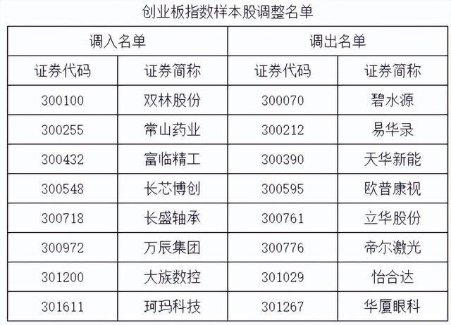创业板指数更换8只样本,双林股份、常山药业、长芯博创等调入指数。
